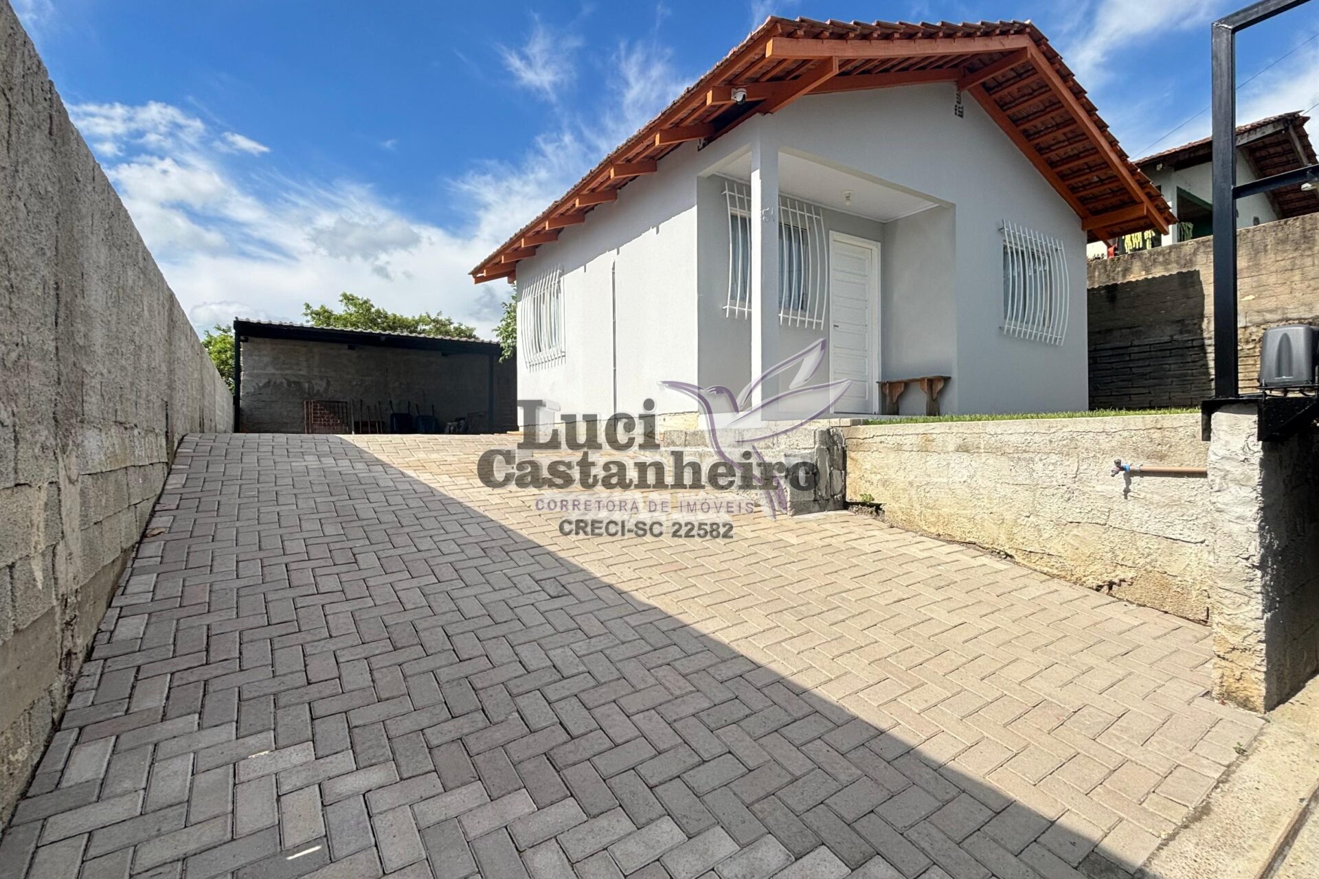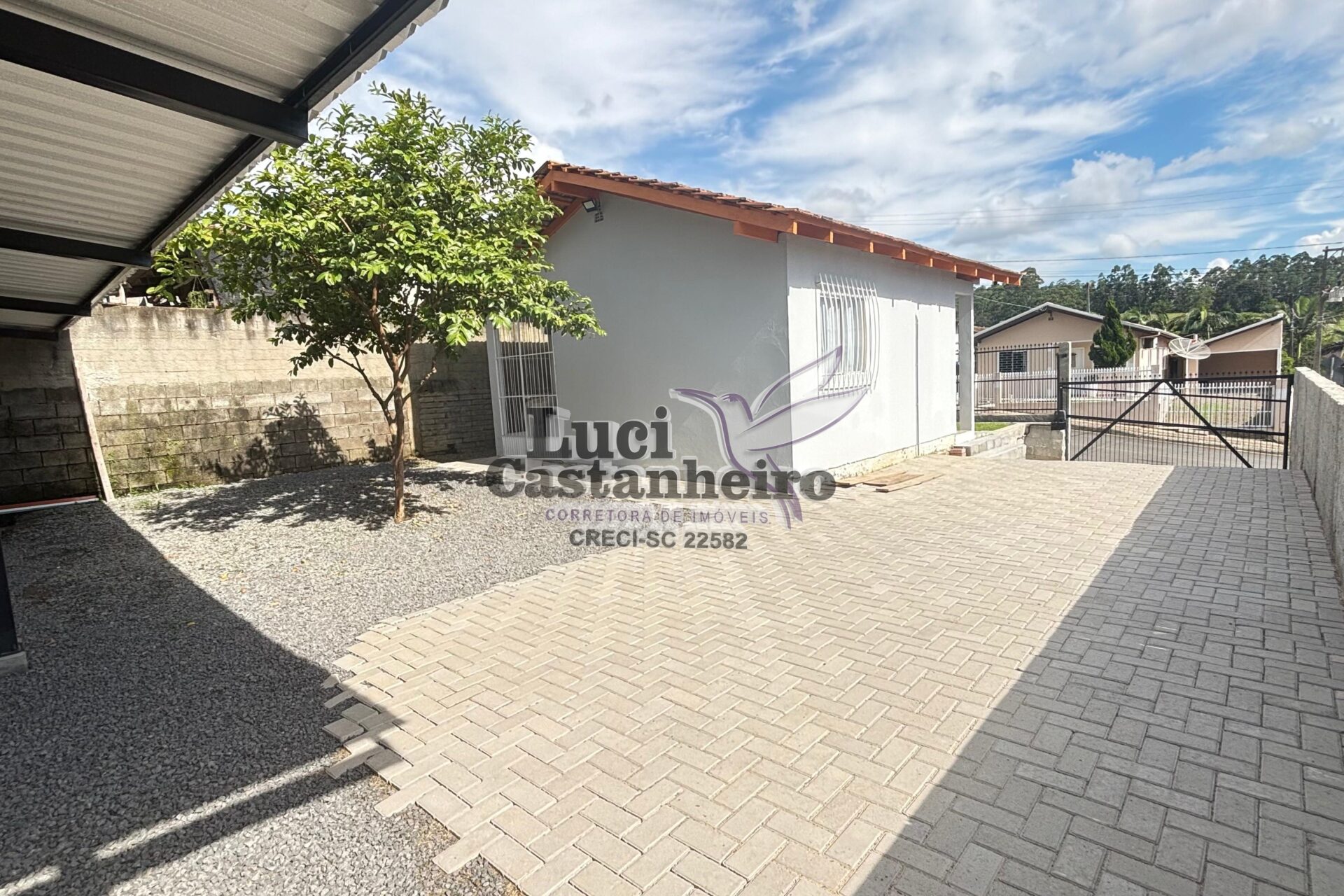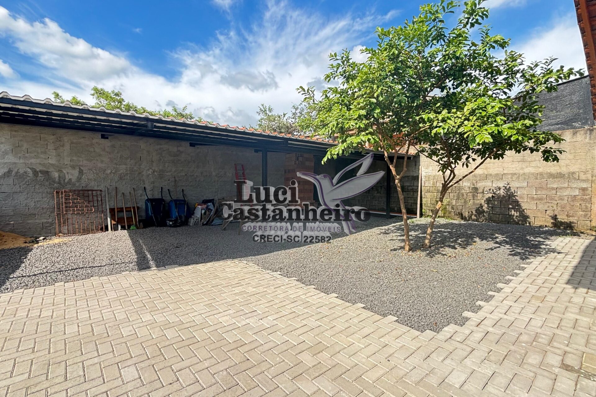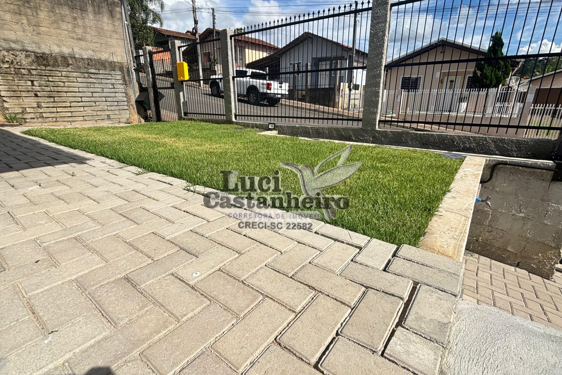 O pátio principal é todo revestido com paver, e a parte frontal possui área gramada, proporcionando um ambiente agradável e bem organizado. Dispõe ainda de amplo espaço para garagens e área de festas, ideal para receber família e amigos.