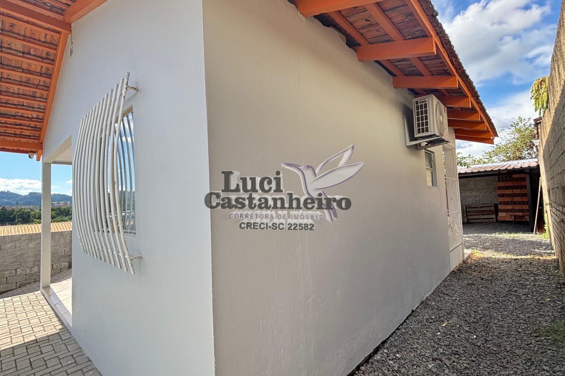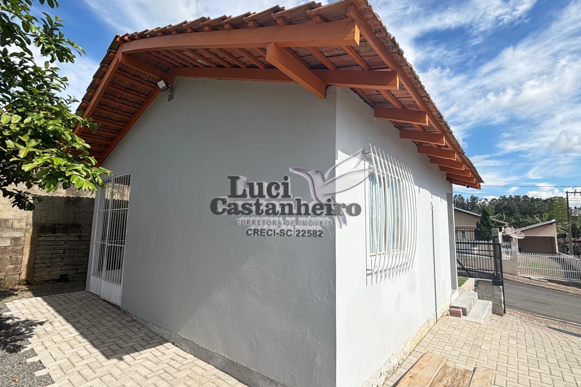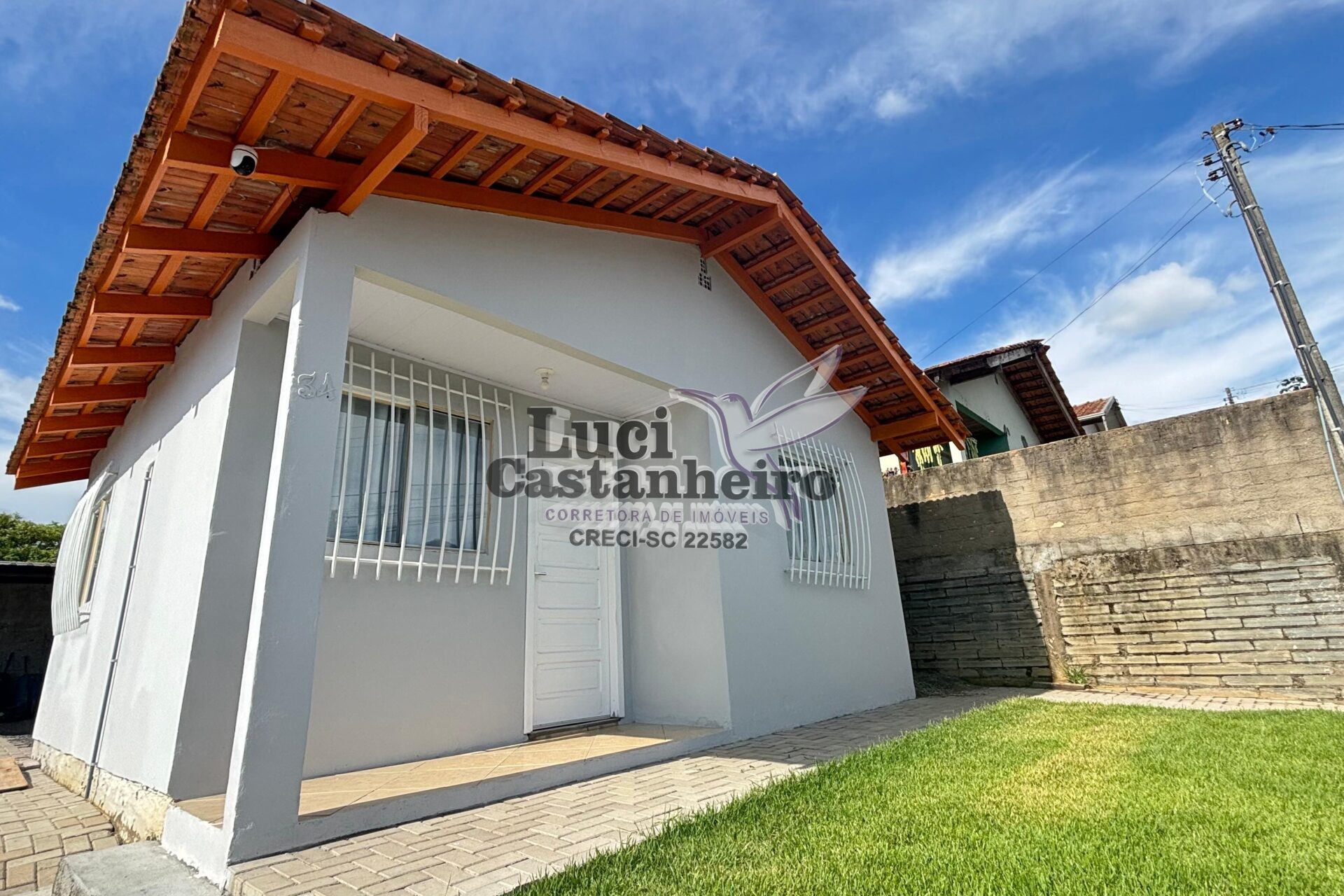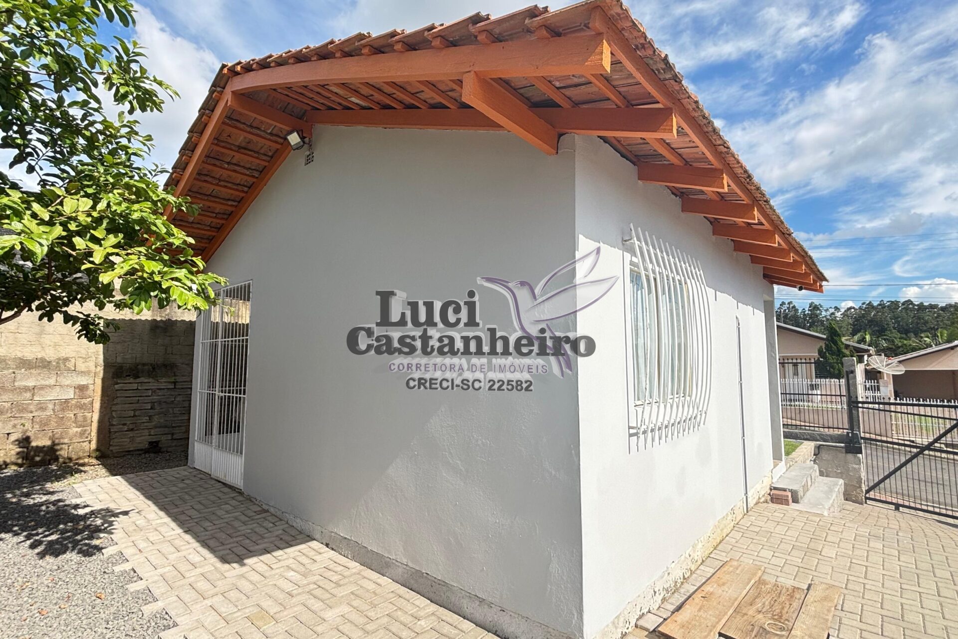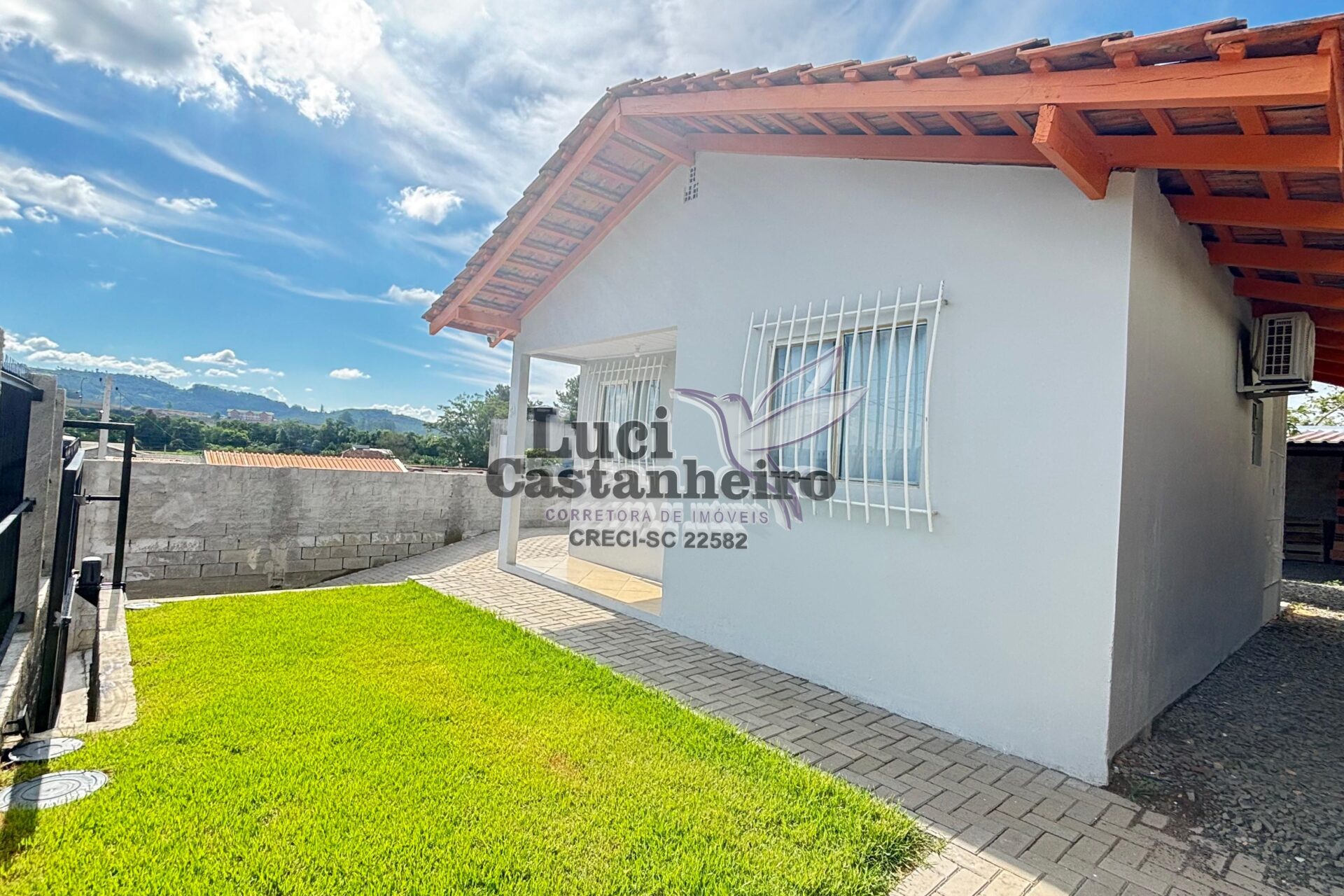 O pátio principal é todo revestido com paver, e a parte frontal possui área gramada, proporcionando um ambiente agradável e bem organizado. Dispõe ainda de amplo espaço para garagens e área de festas, ideal para receber família e amigos.