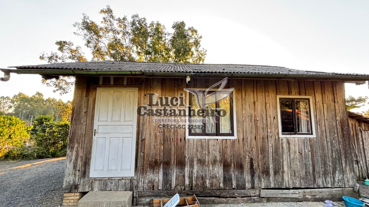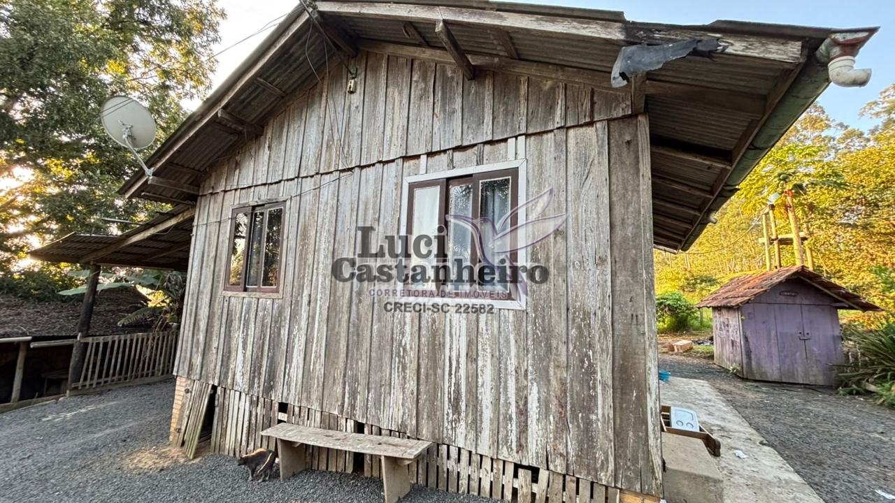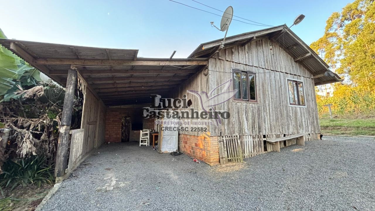 O imóvel possui uma casa de madeira simples de madeira, sem pintura, com aproximadamente 79 m², contendo 02 quartos, sala, cozinha, lavação, banheiro e garagem com 01 vaga coberta, em estado de conservação regular. Ao lado, há um ranchinho de madeira.