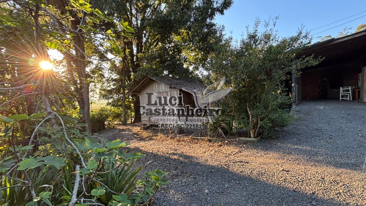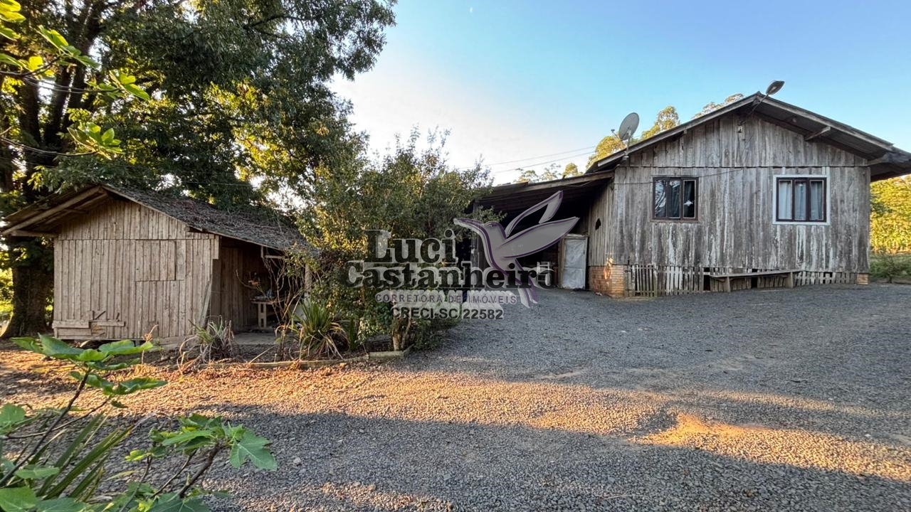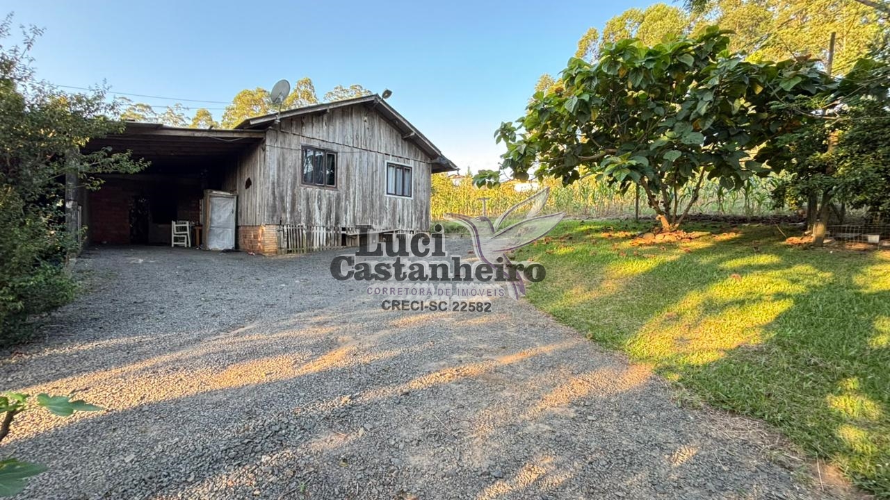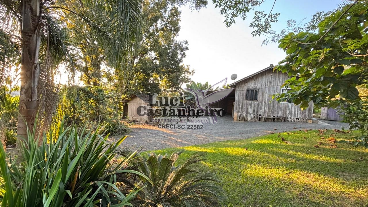 O imóvel possui uma casa de madeira simples de madeira, sem pintura, com aproximadamente 79 m², contendo 02 quartos, sala, cozinha, lavação, banheiro e garagem com 01 vaga coberta, em estado de conservação regular. Ao lado, há um ranchinho de madeira.