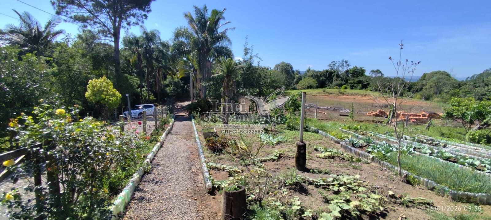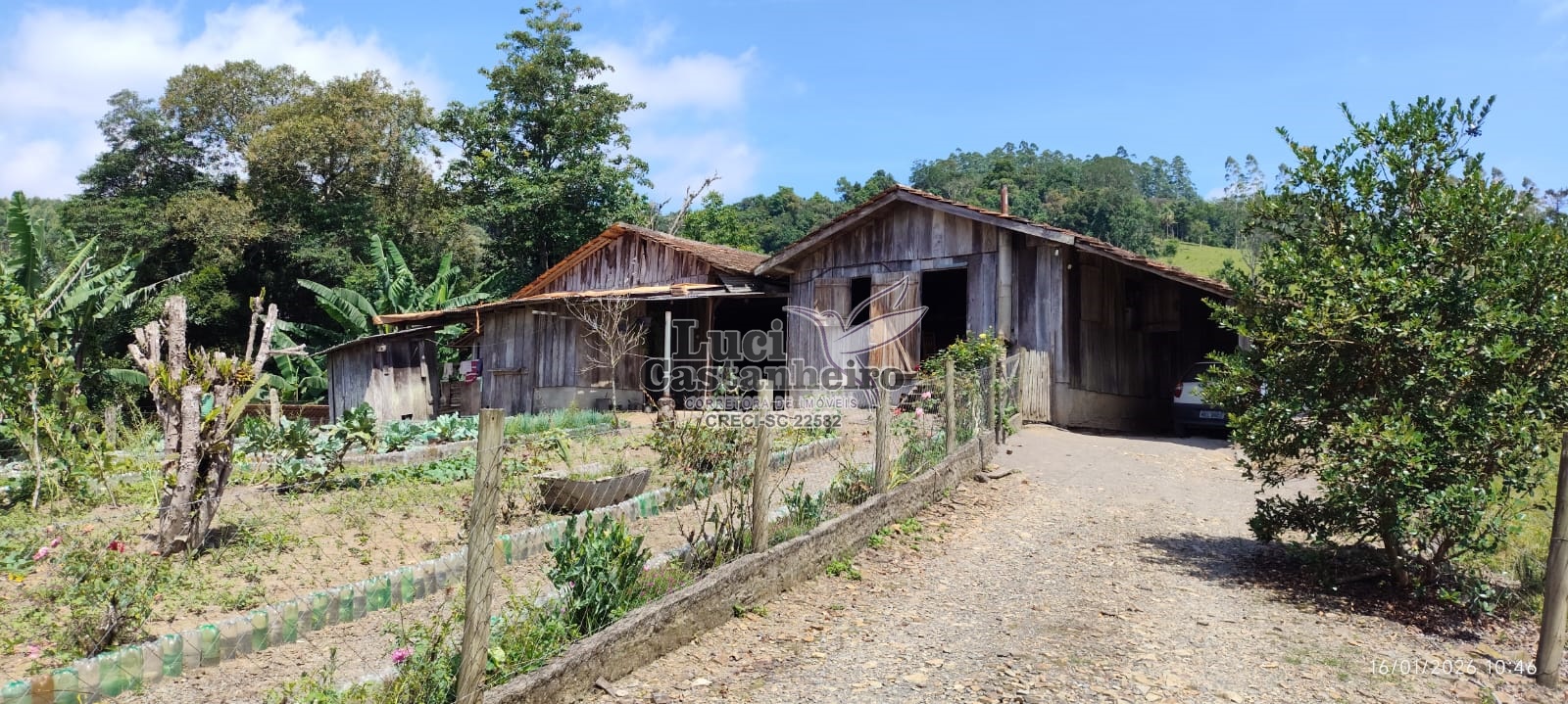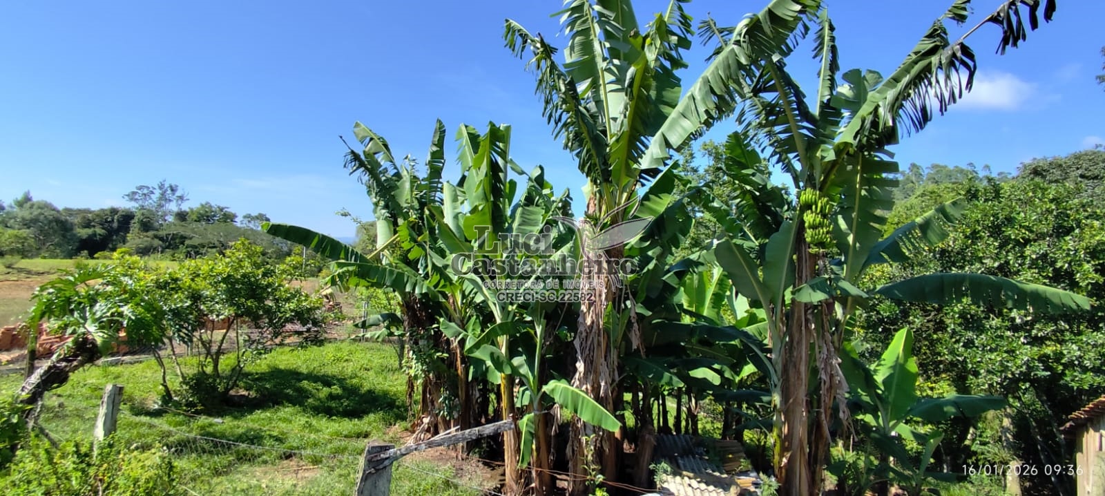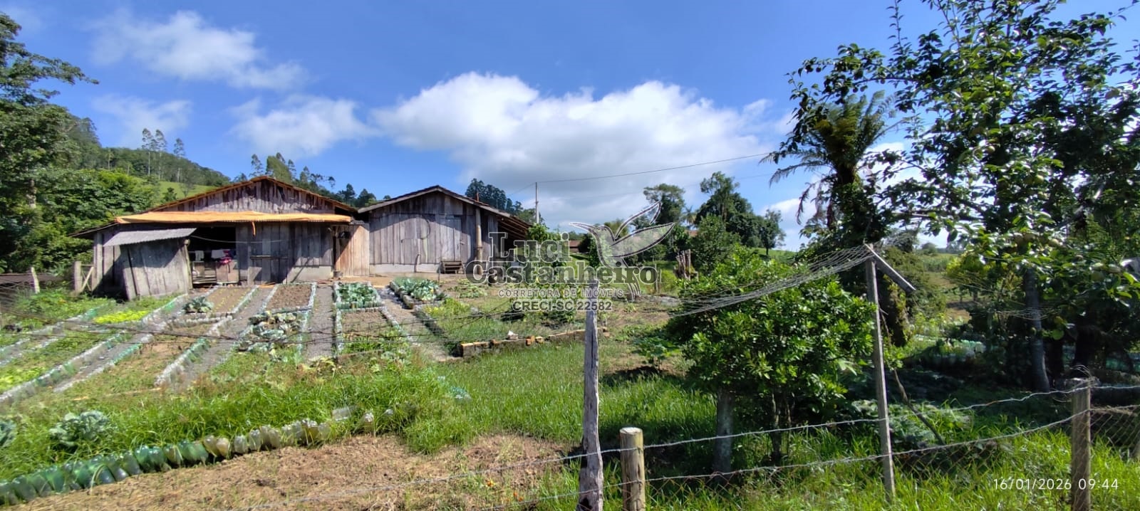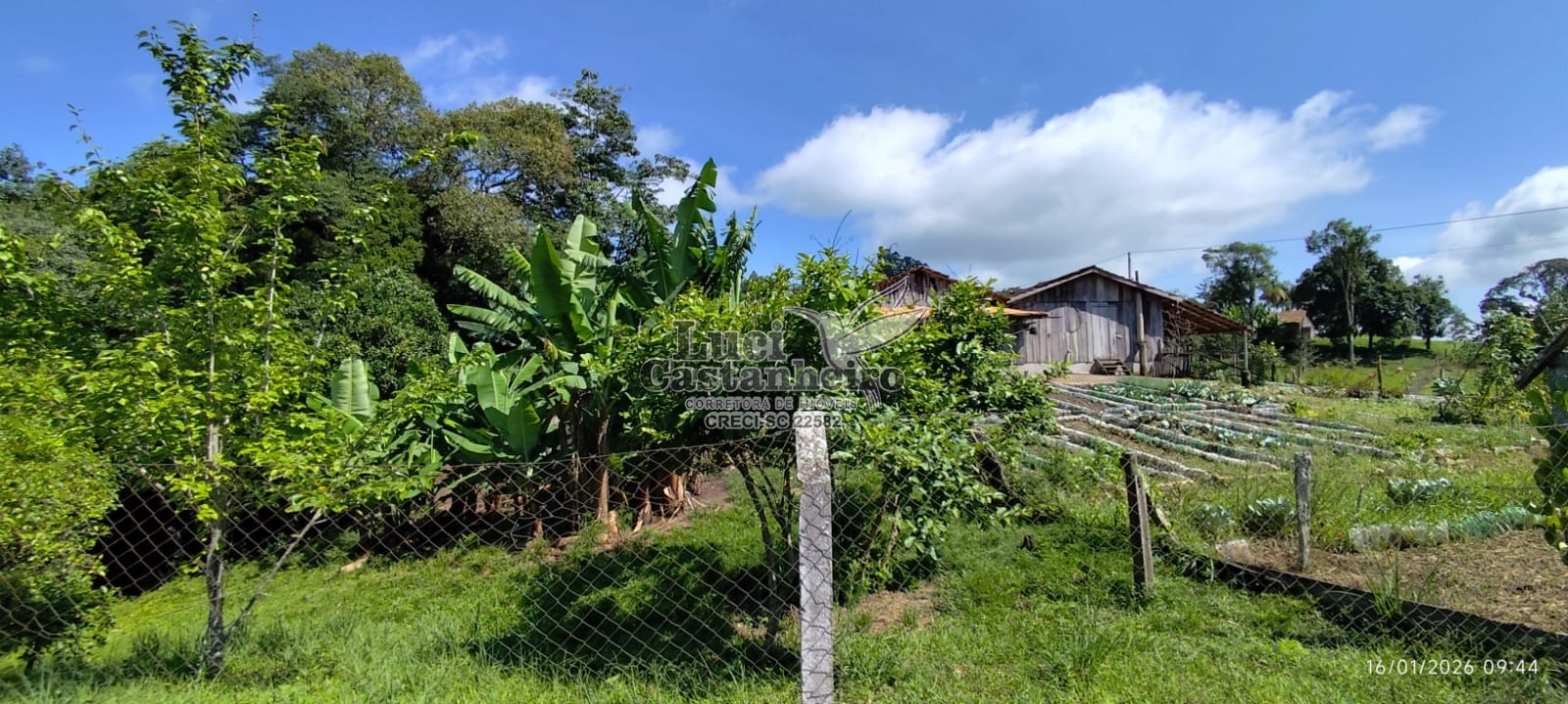 Conta com nascentes de água para consumo, duas lagoas, área para plantio, pomar com diversas árvores frutíferas já produzindo, espaço para horta e dois ranchos de madeira, sendo que um contém piso bruto de cimento, e constituído com madeira tratada, medindo aproximadamente 200 m².
